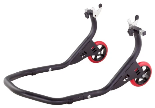 Universal fitting for all motorcycles. Oversized PU wheels. Matt-black powder-coat finish.