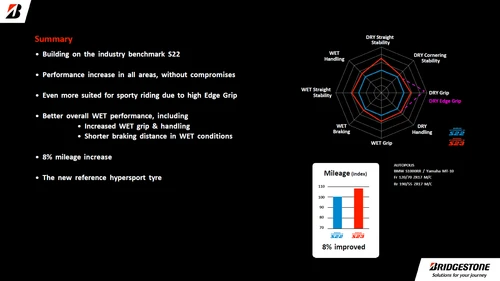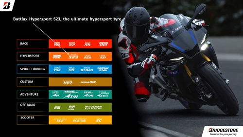 The Battlax Hypersport S23 also benefits from the latest Bridgestone Technologies to ensure stability and mileage, resulting in the new benchmark tyre in its category.