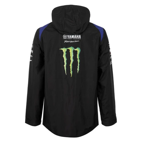 Genuine Yamaha MotoGP Men’s Replica Team Windbreaker Jacket. Like every year, Yamaha offers a set of MotoGP replica teamwear for the fans, connecting to the spirit of this year’s Monster Energy Yamaha MotoGP team. For the colder outdoor racing days, our comfortable windbreaker protects you from the wind and keeps you warm. The windbreaker includes a hood and wind cords to close around your neck and two zipped side pockets.
