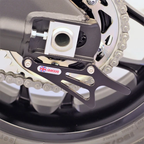 Swingarm lifter brackets machined from billet aluminium and supplied with stainless steel bolts.
