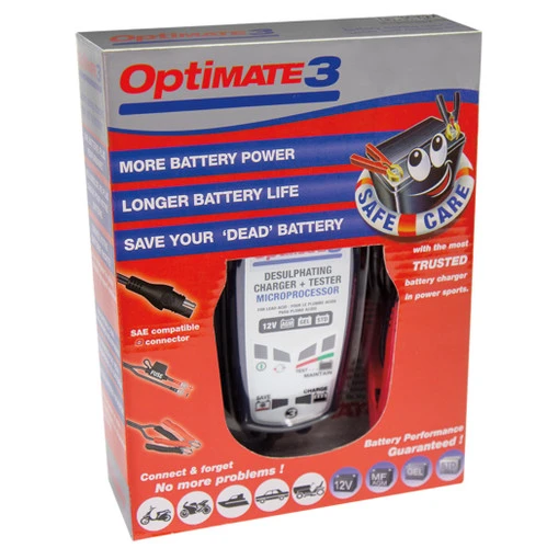 OptiMate 3 will recover your battery from deep discharge and optimally recharge it. Then it will check that the charge delivered is the best possible before then checking how well the battery can retain the charge. Of course, it will then maintain your battery at full charge safely for months at a time. Also prolonging its life by up to 400%.