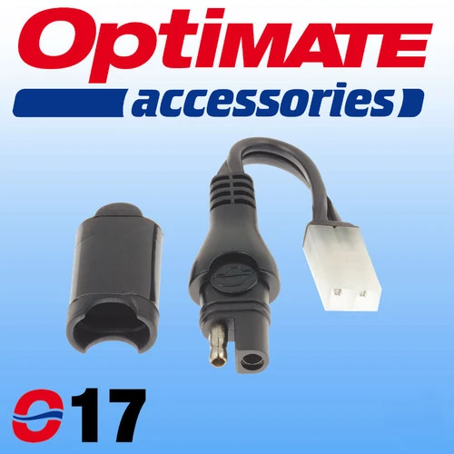TThe O17 Optimate TM to SAE Conversion Lead, also known as Optimate part number TM77, converts a traditional TM end connector (the White Original Connector) in to the new SAE fitting enabling a variety of Optimate accessories and battery chargers to be used.