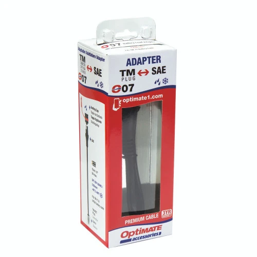 Converter lead to connect your OptiMate with SAE-compatible connector to TM-accessories (as used with AccuMate and pre 2012 OptiMate models). Simply plug one end of the converter lead into a standard OptiMate TM lead (e.g. TM71) and you can then use a newer OptiMate, or other SAE accessory). In this way, you can connect an SAE compatible OptiMate to a bike or car equipped with a TM lead. Supplied complete with removable weatherproof rubber cap.