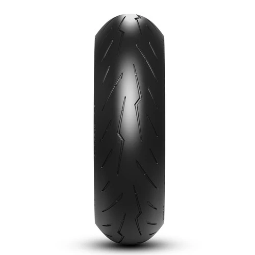 The shoulder compound is 100% Carbon Black and derives directly from the compounds of DIABLO™ Supercorsa SC used in endurance competitions. This compound thanks to the Cap&Base scheme that guarantees its thermal balance, is able to offer support at full lean and traction during acceleration, managing even the torque generated by the latest generation of superbikes.