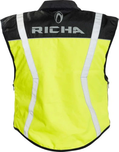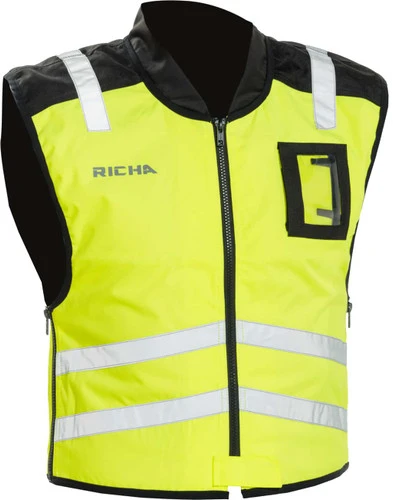 Richa Sleeveless Safety Jacket Fluo is a quality waistcoat that is built to stand up to the rigours of regular riding. The 600D Polyester Oxford fabric and double-stitching will ensure the durability and longevity of the garment, and the sturdy zip will make sure it stays closed even at high speeds – unlike a standard velcro-fastening high-viz. Comfort stretch, vertical side zippers, and adjustable waist ensure fit flexibility, and the clear document pocket and mesh lining add functionality. Bright hi-viz colouring and high-visibility 3M® reflective elements combine to keep the rider ultra-visible, This premium jacket is specifically manufactured with the biker in mind, and will serve you well and keep you safe on the road ahead. Choose Richa, and never get caught out by inferior gear when safety is concerned.Â