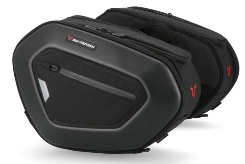 The PRO BLAZE saddlebags with removable support arms impress with a sporty look, low weight and a clever fastening system. SW-MOTECH manufactures the bags from robust and especially UV-resistant 1680D Ballistic Nylon. In combination with side panels made of dimensionally stable EVA material, the luggage is protected from splashing water and dust. Developed specifically for sporty motorcycles, the saddlebags have minimal effect on handling performance. When travelling without luggage, the removable support arms can be detached with a simple step, leaving only inconspicuous holders behind on the bike.