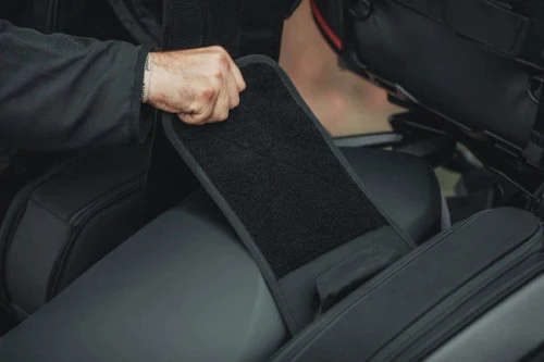 - Upper side of the Velcro strap covered with anti-slip material for a secure hold on the passenger seat